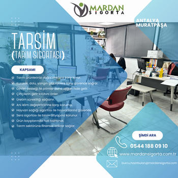 Kurumumuz, Antalya ve çevre illerde faaliyet gösteren bir sigorta aracılık firmasıdır. Uluslararası firmaların desteği ile hizmetimiz süresince sizlere her daim "yenilikçi" ve çözüm odaklı hizmet sunmayı kendimize amaç edinmiş bulunmaktayız. Bu sayede her zaman "emeğiniz emeğimiz, ürününüz ürünümüz, sağlığınız bizim sağlığımız, eviniz bizim evimiz" gibi olacaktır. Antalya, Isparta, Burdur, Denizli illerinin, köy ve kasabaları da dahil olmak üzere bir çok bölgeye sera, tarla, konut, işyeri, kasko, trafik, yangın, mühendislik, nakliyat, sağlık, yabancı sağlık, zorunlu deprem sigortası (Dask) ve akaryakıt istasyonu sigortası gibi bir çok farklı sigortacılık hizmetini sunmaktayız.