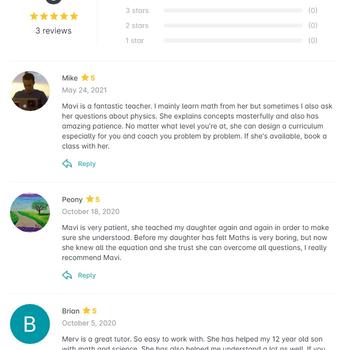 I am Mavi, a physics engineer working at the Aerospace Company in Istanbul Turkey. I have been teaching private lessons at primary, secondary, high school and university preparatory levels for 9 years. I also teach mathematics, physics, chemistry and science. I have good command of IB, IGCSE, USA, Hong Kong and international schools curriculum. I can give a reference. I was the president of Hacettepe University Astronomy Society, I increase my students' interest by telling about astronomy and science issues outside of the lesson, so I also prepare the learning environment by experimenting and exploring, away from rote education. Most of the time, I bring experimental materials with me in classes and I aim to learn memorable by doing experiments together. I am also a training coach. I approach my students like a brother and a sister, creativity is important to me. I love and love mathematics, physics and science. I care very much for the student to understand and learn. Because life is SCIENCE and ART. The more people know, understand and love mathematics, physics and chemistry thanks to me, the more I am proud of. Do you wonder how nature works? Let's explore together :)