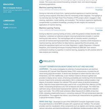Merhaba, ben Mehmet Akif Köz. Bilgisayar mühendisliği öğrencisi olarak hem akademik hem de sektörde edindiğim deneyimlerle, özellikle yapay zeka ve makine öğrenmesi alanlarında tecrübe edindim. Bitirme projemde geliştirdiğim inovatif sistemle, yoğurt fermantasyon sürecini takip eden bir sistem geliştirdim. C, Python, HTML, CSS, JavaScript gibi popüler dillerde ve AWS gibi bulut platformlarına hakimim. Temel programlamadan ileri seviye makine öğrenmesine kadar geniş bir yelpazede eğitim vermek istiyorum. Hem lise öğrencilerine programlama dünyasına giriş yapmalarında yardımcı olmayı, hem de üniversite öğrencilerinin ve çalışanların kariyerlerini ilerletmelerine destek olmayı hedefliyorum. Birebir veya grup derslerimle, öğrencilerin kendi hızlarında ilerlemelerini amaçlıyorum. Daha fazla bilgi almak için lütfen benimle iletişime geçin.