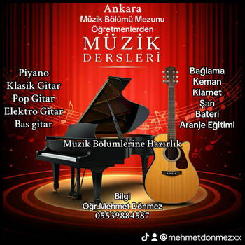 Merhaba ben Mehmet Dönmez. Ankara doğumluyum ve KKÜ Güzel Sanatlar Fakültesi/Müzik Anabilim Dalı mezunuyum.Yıllardır hem özel okullarda hem de özel derslerle öğrencilerimle bir arada oldum.Ayrıca müzik ve sahne organizasyonları,müzik kayıt prodüksiyonluğu ve aranjörlüğü yapmaktayım.Sizin en iyi şekilde eğitim almanız için elimden gelen bütün nitelikleri kullanmaya hazırım.