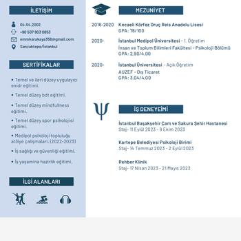 İstanbul Medipol Üniversitesi Psikoloji Mezunuyum. Online olarak danışan alıyorum.