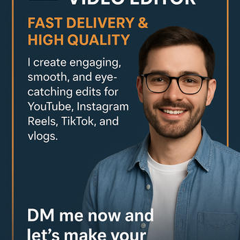 Merhaba, ben Mehmet. YouTube, Instagram Reels, TikTok ve vlog videolarınızı izleyenleri ekrana kilitleyecek şekilde düzenliyorum. Videolarınızın daha akıcı, etkileyici ve profesyonel görünmesi için yaratıcı kurgu teknikleri ve modern efektler kullanıyorum.