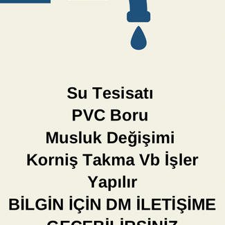 Merhabalar, Sıhhi Tesisat PVC Boru Musluk Değiştirme Korniş Takma Fayans Tamiratı Vb İşler Yapılır Bilgi için İletişime geçebilirsiniz