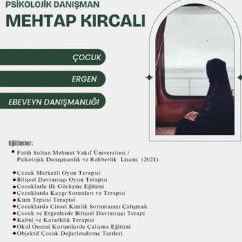 Merhaba iyi günler ben Mehtap Kırcalı. Çocuk ve Ergenlere yönelik psikoterapi desteği vermekteyim. Deneyim ve mesleki bilgilerimi profilimdeki bilgilerden inceleyebilirsiniz.