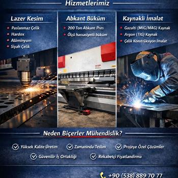35mm kalınlığa kadar lazer sac kesim ve 12mm kalınlığa kadar Abkant büküm yapmaktayız. Hassas imalat ve hızlı teslimat önceliğimizdir.