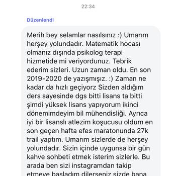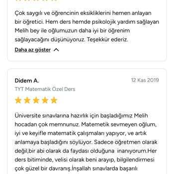 Hoş Geldiniz: Matematiğin Sade ve Anlamlı Dünyasına Lise yıllarımda matematiğe duyduğum ilgi, zamanla hem kendi başarımın hem de başkalarının yolunu aydınlatan bir tutkuya dönüştü. Öğretmenlerin anlatmakta zorlandığı konuları, arkadaşlarıma sade ve anlaşılır bir şekilde anlatarak onların da matematiği sevmesini sağladım. Bu tutkum sayesinde üniversite sınavında ilk 15 bine girdim ve psikoloji okudum. Üniversiteyle birlikte özel ders vermeye başladım. Fakat klasik yöntemlerin dışına çıkarak, psikoloji bilgimi de derslere taşıdım. Mizaç eğitimim sayesinde her öğrencinin öğrenme stiline uygun anlatım yöntemleri geliştirdim. Sonuçlar etkileyiciydi. Öğrenciler sadece notlarını değil, özgüvenlerini de artırdı. Bugün, hem akademik başarı hem de sosyal yaşamda daha güçlü bir yer edinmek isteyenler için matematik vazgeçilmez bir anahtar. Matematik; analitik düşünme, problem çözme ve stratejik planlama becerileriyle, sadece sınavlarda değil, iş hayatında ve toplumsal statüde de sizi bir adım öne taşır. Ben de bu yolda size rehberlik etmeye hazırım. Neden Benimle Ders Almalısınız? • Sade, anlaşılır ve sistemli anlatım • Psikoloji destekli bireysel öğrenme yaklaşımı • Her öğrencinin mizacına uygun yöntem • Başarıyı ve statüyü destekleyen bakış açısı • Motivasyon odaklı ve ilham verici bir ders atmosferi Matematiği birlikte sadece anlamakla kalmayacak, onunla hayatınızı dönüştüreceksiniz. Hazırsanız başlayalım!