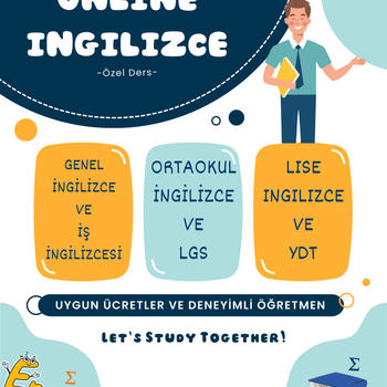 İngilizce pratiği, sınav çalışmaları, YDT, YDS, okul derslerine destek için iletişime geçebilirsiniz. Deneyimli ve genç bir öğretmenim, rahat iletişim kurabileceğiniz, sıkılmadan, yorulmadan İngilizce öğrenebileceğiniz dersler için hazırsanız, ben hazırım.