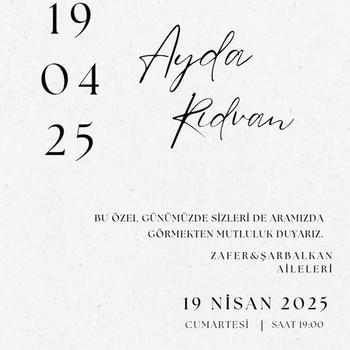 Hayalinizdeki Davetiyeyi Gerçeğe Dönüştürüyorum Her özel an, ona yakışan bir davetle başlar. Söz, nişan, düğün, doğum günü ya da özel organizasyonlarınız için tamamen kişiye özel tasarımlar hazırlıyorum. Hayalinizde ne varsa, tarzınıza ve hikayenize uygun şekilde modern, sade, boho ya da klasik stillerde davetiyelerle buluşturuyorum. “Hazır kalıplara sığmayan bir davetiye istiyorum” diyorsanız doğru yerdesiniz. Tasarım sürecinde birebir iletişimle ilerleyerek, her detayı sizinle birlikte şekillendiriyorum. Neden beni tercih etmelisiniz? Her detay sizin isteklerinize göre özel olarak hazırlanır. Dilerseniz dijital, dilerseniz baskıya uygun formatta teslim edilir. Uyumlu zarf, etiket ve masa kartı tasarımları da mevcuttur. Hızlı teslim, samimi iletişim ve yaratıcı fikirlerle sürecin her anında yanınızdayım.