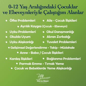 Ben Çocuk Gelişim Uzmanı Merve BAŞER. Adapazarı'ndaki ofisimizde 0-18yaş aralığındaki çocuklara ve ebeveynlerine gelişimsel destek ve ebeveyn rehberliği hizmeti sunmaktayım.