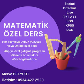 Merhabalar ismim Merve öğrencilerimle birebir Online ders yapmaktayım. Öğrencinin seviyesine göre derslerimi ilerletip kaynak kitap önerileri yapıp bol soru çözümüyle derslerimi yapıyorum öğrenciye uygun çalışma programı ayarlayıp derslerimize başlayabiliriz . Online kafanızda bi soru işareti bırakıyorsa ücretsiz bir deneme dersi yapabiliriz
