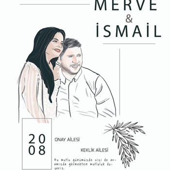 davetiye tasarımı için bana fotoğrafınızı atıyorsunuz.karikatürize ediyorum sonra mevcut şablonlarımdan beğendiğinize iliştiriyorum.ben sadece tasarım işindeyim.baskı sizde.kişiye özel,eşsiz. çalışmalarıma @gulecart sayfasından ulaşabilirsiniz.sevgiler
