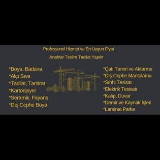 • Dış Cephe Mantolama ✓ • Alçı ✓ • Boya ✓ • İç Dış Dekarasyon ✓ • Duvar ✓ • Seramik ✓ • Fayans ✓ • Kalıp ✓ Temelden işleriniz ve her türlü Tamir tadilat inşaat işleriniz laiki ile yapılır teslim edilir anahtar teslim temel isleriniz yapılır.