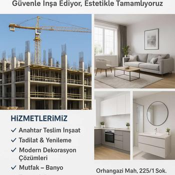 Tunceller Yapı İnşaat ve Dekorasyon Hayallerinizi Gerçeğe Dönüştürüyoruz Ev, ofis veya iş yeriniz için modern, estetik ve kaliteli çözümler mi arıyorsunuz? Tunceller Yapı, deneyimli ekibi ve profesyonel hizmet anlayışıyla, inşaattan dekorasyona kadar tüm süreçlerde yanınızda Anahtar Teslim İnşaat Tadilat ve Yenileme İç ve Dış Dekorasyon Mutfak, Banyo, Zemin ve Duvar Uygulamaları Modern Tasarım ve Kaliteli Malzeme Zamanında Teslim, Güvenilir Hizmet, Estetik Dokunuşlar Her projede kaliteyi ön planda tutarak, yaşam alanlarınıza değer katıyoruz. Tunceller Yapı ile eviniz, işiniz ve geleceğiniz güvence altında.