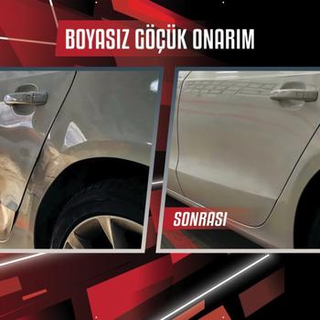 Boyasız gocuk duzeltme doludan veya park hasarından oluşan gocukler Kaporta tamırı ve lokal boya Plastık parca ve far tamırı Parca degısımı ve montaj On tampon tamırı ve boya Onarım asaması resımlerı oncesı ve sonrası