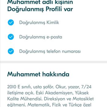 Merhaba, 15 yıllık E sınıf ehliyetli usta şoför ve aynı zamanda motosiklet sürücüsüyüm. İstanbul trafiğinde dahi rahat bir şekilde araç kullanmak istiyorum diyorsanız, benimle iletişime geçiniz.