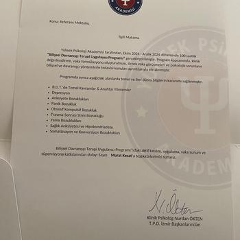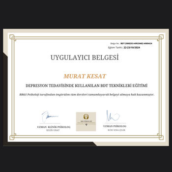 Haliç Üniversitesi Psikoloji lisans bölümünü tamamladım. Bilişsel Davranışçı Terapi eğitimini tamamlayarak erişilebilir uygun fiyatlı online veya yüzyüze danışan kabul ediyorum.
