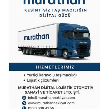 Murathan Dijital Lojistik Otomotiv Sanayi ve Ticaret Ltd. Şti. olarak, lojistik ve nakliye sektöründe edindiğimiz tecrübe ile kurumsal müşterilere özel, hızlı, güvenli ve çözüm odaklı taşıma hizmetleri sunmaktayız. Geniş araç filomuz ve deneyimli ekibimizle; fabrikalar, depolar ve üretim merkezleri arasında kesintisiz lojistik desteği sağlamaktayız.