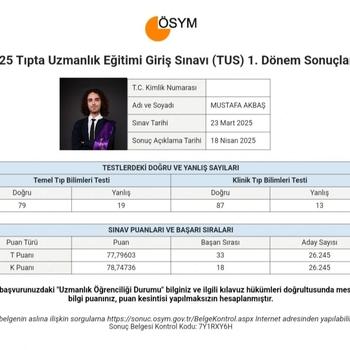Selamlar Ben Mustafa. 2025 İlkbahar TUS Klinik Bilimler 18.siyim. Halihazırda dermatoloji asistanıyım. Daha önceleri YKS için yüzlerce öğrenciye birebir koçluk yaptım. Bir süredir de TUS için yapıyorum. Hacettepe Tıp’ta okurken aynı anda onlarca öğrenciye koçluk yapmış olma sebebim bu işi seviyor olmam, şimdi de bunun TUS versiyonunu gerçekleştiriyorum. Mental olarak süreci yönetmekte zorlanan, uzun vadeli sınav yönetiminde dönemsel olarak hangi duygulara, hangi düşüncelere sarılmamız gerektiği konusunda sorun yaşayan meslektaşlarıma çok yardımım olacağını düşünüyorum. Spot bilgi paylaşmak, doğru kaynağı bulmanıza yardımcı olmak gibi temel şeyleri vaat etmeme gerek bile yok. Tabii ki kaynakları, gidişatı, ilerleyişi hem kısa vadeli hem uzun vadeli olacak şekilde birlikte planlayacağız. Benim koçluğumun/mentörlüğümün en büyük amacı süreç boyunca takıldığınız noktalarda size yol göstermek, uzun vadeli sınavlarda en önemli şeyin zihinsel olarak sınava odaklanmak olduğunu size benimsetmek ve bu beceriyi size kazandırmak. Koçluk başarı için bir koşul değildir, hepimiz zeki insanlarız fakat bazen süreçte zorluklar yaşayabiliyoruz benim gayem de buraya çözüm olabilmek. Tek başınıza bu süreci yönetebiliyorsanız pek tabii o yoldan da başarıya ulaşabilirsiniz. Bu ülkenin aydınlık yüzleri olarak böyle zorlu bir sınava çalışmaya çalışan ve türlü fedakarlıklar gösteren tüm değerli meslektaşlarıma başarılar diliyorum. Dileyenler instagram üzerinden de bana ulaşabilirler: @akbasmustafaa