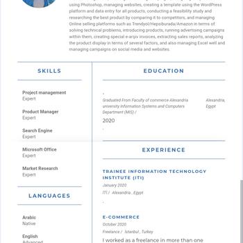 4 yıllık deneyime sahip son derece başarılı ve azimli CEO Kapsamlı pazarlama bilgimi güçlendirecek zorlu bir yönetici rolü arayan, sosyal medya yönetimi, reklam kampanyaları oluşturma, Photoshop kullanarak ürün tasarlama, pazarlama alanında 4 yıldan fazla deneyime sahibim. web sitelerini yönetmek, WordPress platformunu kullanarak şablon oluşturmak ve tüm ürünler için veri girişi yapmak, fizibilite çalışması yapmak ve rakiplerle karşılaştırarak en iyi ürünü araştırmak, teknik sorunların çözümü açısından Trendyol/Hepsiburada/Amazon gibi Online satış platformlarını yönetmek. Ürünlerin tanıtılması, bunların içinde reklam kampanyalarının yürütülmesi, özel e-arşiv faturalarının oluşturulması, satış raporlarının çıkarılması, ürün teşhirinin çeşitli faktörlere göre analiz edilmesi, ayrıca Excel'in iyi yönetilmesi, sosyal medya ve web sitelerindeki kampanyaların