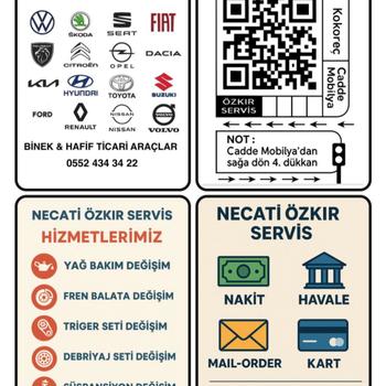 Kaliteli işçilik uygun fiyat Oto bakım ve Tamir yanınızdayız İşçilik ve Yedekparça ücreti verilir Müşteri onay verir ise işlem yapılır Hizmetlerimiz Yağ Bakım Değişimi Fren Balata Değişimi Triger Seti Değişimi Debriyaj Seti Değişimi Süspansiyon Değişimi Alt Düzen Değişimi