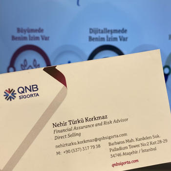 QNB Finansbank’a bağlı QNB Sigorta’da Finansal Risk ve Güvence Danışmanlığı yapıyorum. Uygun olduğunuz bir gün hem sizinle tanışmak, hem de yüz yüze brüt maaş kazancınız vb. Kazançlarınızdan vergi avantajlı Akıllı Hayat Sigortası ve Tamamlayıcı Sağlık Sigortası ürünümüzden bahsetmek istiyorum. (Bulunduğunuz vergi dilimine göre gelir vergisi matrahından indirim imkanı sağlayan ,böylelikle daha az bir vergi ödüyorsunuz,aynı zamanda size yaşam ve vefat teminatı sunar.)