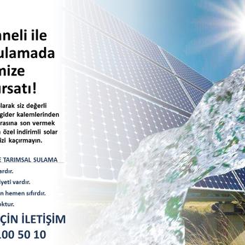 Güneş panelleri ile kendi elektrik enerjinizi üretip sulama pompalarınızı çalıştırabileceğiniz sistemlerin anahtar teslim kurulumu yapılır
