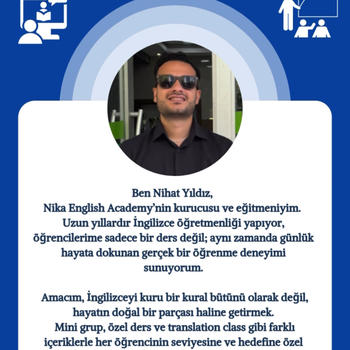 NIKA English Academy – Darıca / Online İngilizce Eğitim Çocuk, yetişkin, kurumsal eğitim Kafe ortamında konuşma pratiği + mini gruplar Native & sertifikalı öğretmen desteği Instagram : nikaenglishacademy