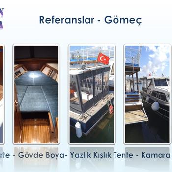 Her türlü teknenin bakım, boya, tamir, tente, minder işlerinde Türkiye'nin tüm Marinalarında 35 yılı aşan tecrübe. Her marka ve donanımda 300ü aşkın tekne ve memnun sahipleri. Çok sayıda referans.
