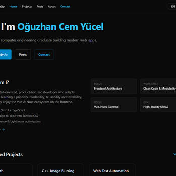 Merhaba! Ben Oğuzhan Cem Yücel, Full-Stack Web Geliştirici olarak web projelerinizi modern, hızlı ve kullanıcı odaklı çözümlerle hayata geçiriyorum. Next.js, Nuxt.js, Flutter, Flask, Python, JavaScript ile hem front-end hem back-end geliştirme yapabiliyorum. Projelerimde SEO uyumlu, responsive ve performans odaklı web siteleri tasarlıyor, kullanıcı deneyimini ön planda tutuyorum. Ayrıca Docker, Firebase, SQL, Git ve Linux ile güçlü ve ölçeklenebilir altyapılar oluşturabiliyorum. Web siteleri, mobil uygulamalar, otomasyon araçları ve yapay zekâ tabanlı platformlar geliştirme deneyimimle, işinizi dijitalde güçlendirecek, verimli ve güvenilir çözümler sunuyorum.