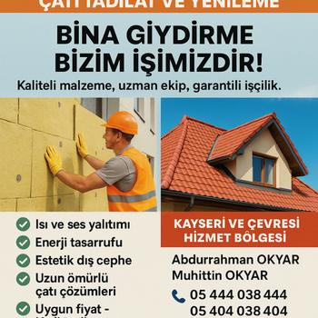 Tecrübeli, profesyonel ekibimizle Kayseri ve ilçelerinde anahtar teslim inşaat ve tadilat hizmetleri vermekteyiz. Villa, Konut, Çiftlik-Bağ Evi, Cami, İstinat Duvarları (Beton ve taş duvar) Dış Cephe Mantolama Dış Cephe Yenileme İç Cephe Alçı, Sıva, Boya, Dekorasyon Çatı Yenileme Ve Aktarma Her türlü inşaat işleriniz itina ile yapılır.