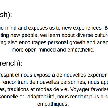 Profesyonel Fransızca ve İngilizce çevirmen olarak, metinlerinizi doğru, akıcı ve kültürel bağlama uygun bir şekilde çevirebilirim. Hem resmi belgeler, hem iş yazışmaları, hem de yaratıcı metinlerde yüksek kaliteli çeviri hizmeti sunuyorum. Detaylara önem verir, terminolojiye hakim olarak mesajınızın anlamını korurum.