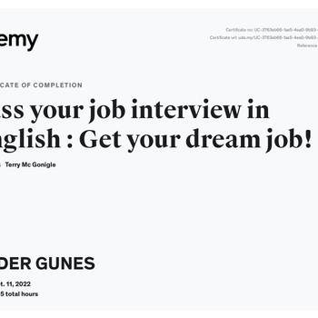 Yakında iş mülakatına gireceksiniz ancak kendinize İngilizce konuşmak konusunda güvenemiyorsunuz. Uzun zamandır dili konuşmadığınız için paslanmışsınız ve pratik yapmanız gerekiyor. Az çok bir temeliniz var fakat mülakatta size neler sorulacağından ve bu sorulara ne tür yanıtlar vereceğinizden emin değilsiniz. Bu sorunları yaşayanlar için özel olarak tasarlanmış "İş Mülakatı İngilizcesi" dersiyle size yardımcı olmaya çalışıyorum. Yurtiçi veya yurtdışında İngilizce mülakatlarda karşınıza çıkabilecek her tür soruya sizi hazırlıyor ve verebileceğiniz cevapları sizinle birlikte oluşturuyoruz. Profilim: ODTÜ Sosyoloji Bölümü'nde yüksek lisans ve doktoramı tamamdıktan sonra Kanada'daki bir üniversitede Sosyal ve Kültürel Analiz alanında ikinci doktorama başladım. Geçtiğimiz 5 yıldır da Kanada'da ikamet ettim. Oradaki üniversitemde kendi alanımda İngilizce olarak dersler verdim. Bunun yanısıra geçmişte çeşitli araştırma şirketlerinde çalıştım. Sizinle yapacağımız özel dersleri İngilizce seviyenize ve ihtiyacınıza göre yapılandırıyorum. En önemlisi keyif alarak öğrenmeniz için çalışıyorum.