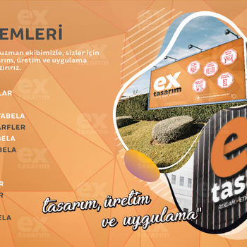 Sizlere yüksek kaliteli, özelleştirilmiş ve yaratıcı çözümler sunarak işinizi bir adım öteye taşıyoruz! Ex Tasarım olarak, dijital baskı, MDF ve metal stand üretimi, pleksi stand yapımı ve ışıklı tabela çözümleri gibi geniş bir ürün yelpazesiyle sektördeki yerimizi sağlamlaştırdık.