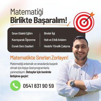 Yıldız Teknik Üniversitesi Matematik Öğretmenliği lisans programını yüksek onur derecesiyle tamamladım ve şu anda aynı üniversitede Matematik Eğitimi alanında tezli yüksek lisans eğitimime devam etmekteyim. Kolej, dershane ve özel ders alanlarında edindiğim deneyim sayesinde farklı yaş gruplarındaki öğrencilerin ihtiyaçlarına uygun öğretim yöntemleri geliştirdim. LGS, YKS, KPSS, ALES ve DGS sınav gruplarında kapsamlı özel ders tecrübem bulunmaktadır. Öğrencilerime yalnızca matematik öğretmeyi değil aynı zamanda analitik düşünme becerisi, problem çözme alışkanlığı ve özgüven kazandırmayı hedefliyorum.