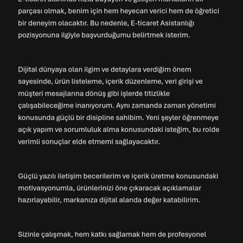 Merhaba! Dijital dünyada aktif olarak üretmek ve iş birliği yapmak istiyorum. Dikkatli, dakik ve iletişime önem veren biriyim. Profesyonel yazılar, etkili seslendirmeler ve düzenli veri girişi hizmetleriyle ilgileniyorum. İhtiyacınızı hızla anlayıp, kaliteli çözümler sunmayı hedefliyorum. Armut dünyasında kalıcı iş ilişkileri kurmak önceliğim.
