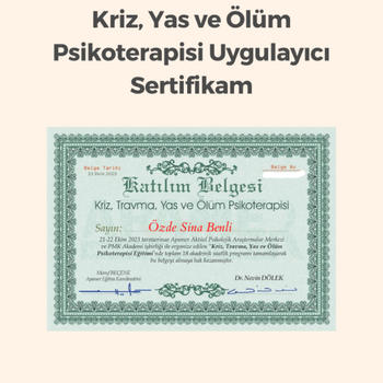 Merhaba, ben Psikolojik Danışman Özde Sina Benli. Çalışma alanlarım; •Bilişsel Davranışçı Terapi •Çözüm Odaklı Terapi •Şema Terapi •Kriz, Yas, Ölüm Psikoterapi •Aile Terapisi •Evlilik ve Çift Terapisi •Kabul Kararlılık Terapisi Danışma ve bilgi için iletişime geçiniz.