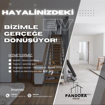 Pandora dekor olarak Tüm anahtar teslim tadilatlarınızı süprizlere uğramadan kaliteli işçilik ve zamanında teslimat ilkesiyle tadilatlarınızda çözüm ortağınız olaya devam ediyoruz