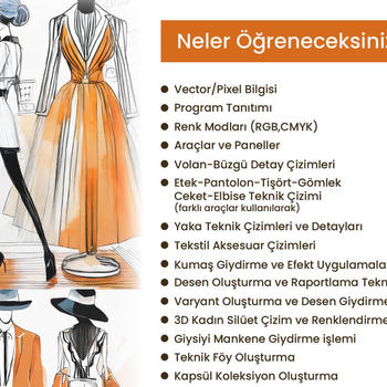 • Moda dünyasına adım atmak isteyen, hayal gücünü dijital ortamda gerçeğe dönüştürmek isteyen herkes için özel olarak hazırlanmış bu eğitim, Adobe Illustrator ve Photoshop programlarıyla dijital moda tasarımının temellerini kapsamlı bir şekilde öğretmeyi hedeflemektedir. • Bilgisayar kullanımına hakim olan herkes, herhangi bir yaş sınırı olmaksızın bu eğitime katılabilir. • Eğitimin sonunda, katılımcılara başarıyla tamamladıklarına dair resmi bir sertifika verilir. Bu sertifika, hem kişisel portföyünüzü güçlendirecek hem de moda sektöründe kariyerinize sağlam bir adım atmanıza yardımcı olacaktır.