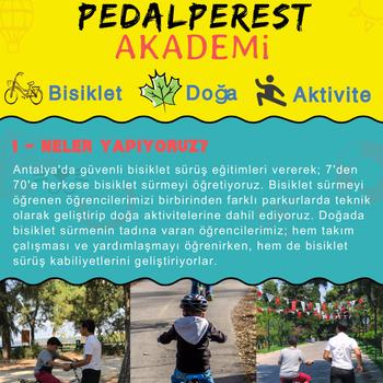 Antalya da 7 den 70 e herkese bisiklet sürmeyi güvenli sürüş teknikleriyle öğretiyoruz. Bisikleti öğrettikten sonra hep birlikte doğada yeni maceralara atılıyoruz.
