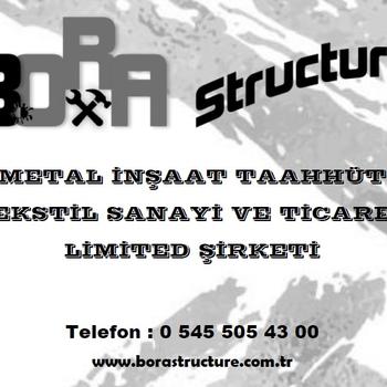 Her türlü daire tadilatı, elektrik, tesisat, asma tavan, duvar, sıva, boya işleri, işlerinde usta profesyonel ekiplerimizle hizmet vermekteyiz. Yapılan işlem sonrası temizliğimizi ve herhangi olumsuz bir durumda garantimizi Bora Structure Metal İnşaat Taah. Teks. San. ve Tic. Ltd. Şti. olarak gerçekleştirebilir. Sloganımız İşimiz titiz eviniz temiz. Ramazan BORA Tel: + Mail: STRUCTURE METAL İNŞAAT TAAHHÜT TEKSTİL SANAYİ VE TİCARET LİMİTED ŞİRKETİ www.borastructure.com.tr