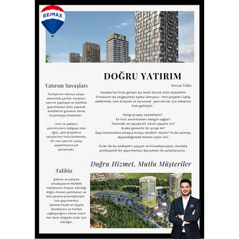 Doğru Hizmet, Mutlu Müşteriler Orta öğrenimimi Adile Mermerci Anadolu Lisesi'nde tamamladıktan sonra Koç Üniversitesi Uluslararası İlişkiler Bölümü'nden %100 burslu olarak mezun oldum. Kamu-Özel iştiraklerinde İş Geliştirme Yöneticiliği pozisyonunda küresel altın ticareti operasyonları yönettim. Aynı zamanda finansal yatırım ve sermaye piyasaları üzerine eğitimler aldım ve aktif olarak işlemler yaparak uzmanlaştım. Bir diğer yatırım aracı olarak görülen gayrimenkule bölgemde olan ilgi ve yoğun talep karşında nitelikli gayrimenkul danışmanlarına olan ihtiyaç beni RE/MAX ile tanıştırdı. Aldığım profesyonel eğitimlerden sonra RE/MAX ailesine katılmış oldum. "Doğru Hizmet, Mutlu Müşteriler" mottosuyla; ben ve RE/MAX ANALİZ ofisindeki deneyimli iş ortaklarım, siz değerli müşterilerimizin en iyi hizmeti alabilmesi için çalışıyor olacağız.