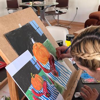 Kadıköy’deki atölyemizde, Marmara Üniversitesi mezunu sanatçı Zeynep Mendes ile resim dersleri ve farklı atölye çalışmaları gerçekleştiriyoruz