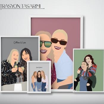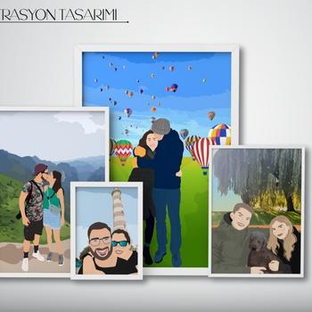 Kişiye özel portre tasarımları yapıyorum. Sevdiklerinizle olan özel anlarınızı vektörel porte haline getiriyorum.