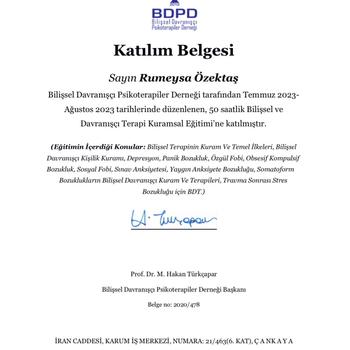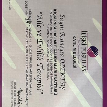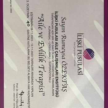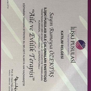 Merhaba ben Psikolog Rumeysa Özektaş. Selçuk Üniversitesi Psikoloji bölümüne birincilikle girdim ve mezun oldum. Eğitimim devam ederken, çeşitli stajlarla bu süreci zenginleştirdim. İlgi Psikolojik Danışmanlık ve Eğitim Merkezinde danışan kabul etmekteyim. Çiftlerde Aile ve Evlilik Terapisi- İlişki Pusulası modelini kullanıyorum. Yetişkinlerde ise Bilişsel Davranışçı Terapi ekolünü kullanmaktayım.