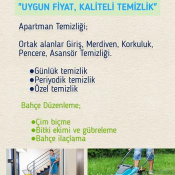 • APARTMAN TEMİZLİĞİ 🧽 🧴 • BAHÇE TEMİZLİĞİ✂️🍃🍂🍁 • BAHÇE DİZAYN&PEYZAJ 🌳🌴🌲🌹 • İLAÇLAMA - BİTKİ GÜBRELEME 🌱🌿🎋 GSM: /