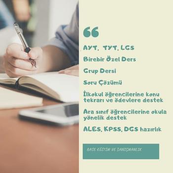 Base Akademi & Psikoloji 3 yıl önce kurduğumuz Base Akademi & Psikoloji ile birlikte kendi ekibimizi oluşturduk. Öğrencilerin ve velilerin ihtiyaçları doğrultusunda, kişisel farklılarına ve sosyal yaşantılarına uygun şekilde hedefleri doğrultusunda oluşturduğumuz kişiye özel çalışma programları ile ilerlemekteyiz. Ekip olarak hizmet verdiğimiz birçok öğrencimiz iyi üniversite ve liselere yerleştiler. Tamamına yakını beklentilerin çok çok üzerine çıkmışlardır. Referans olması amacıyla, gerek duyduğunuz takdirde eski öğrencilerimiz ve velilerimiz ile iletişime geçmenizi sağlayabiliriz. Amacımız sadece ders anlatmak değil, bunun yanında öğrencimize sosyal anlamda beceriler katmak dersler karşısında doğru refleksler geliştirmesini sağlamaktır. Biyografi – Salih Tokgöz İTÜ İşletme Mühendisliği mezunuyum. 8 yıldır profesyonel olarak özel ders öğretmenliği ve öğrenci koçluğu yapmaktayım. Gerekli görüldüğü takdirde sayısal derslerin tamamında destek sağlamaktayım. Ataşehir Belediyesi bünyesinde verilen ders destek birimlerine eğitim danışmanlığı yapmaktayım.