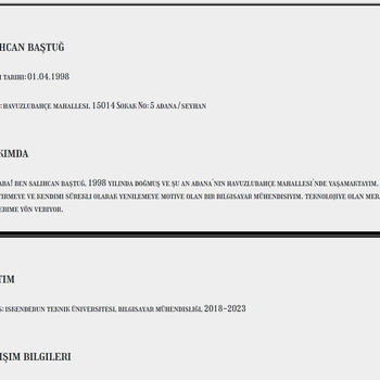 İskenderun Teknik Üniversitesi'nde,Bilgisayar Mühendisliği Bölümü'nü bitirdim.Şuan freelancer olarak evimde çalışıyorum.Talep ettiğiniz ürünleri hazırlarken sizlerle sürekli iletişim halinde kalmayı tercih ediyorum.