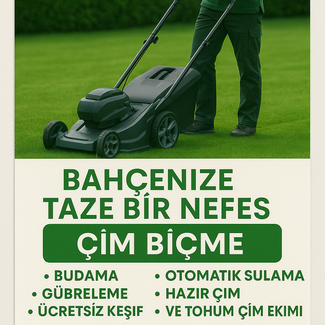 Düzenli olarak bahçe bakımı çim kesimi çim bakım ve ilaçlama çim gübreleme otomatik sulama sistemi vb işleriniz yapılır