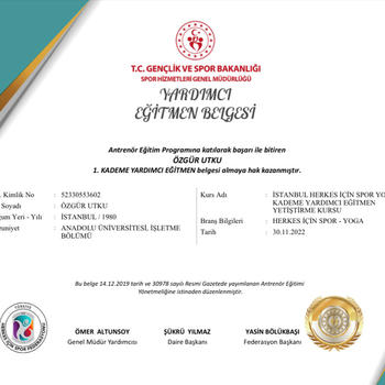 Hayatımın her döneminde sporun farklı branşlarını denedim. Yoga hayatıma yaklaşık 6 yıl önce girdi. Bu süreçte 500 saat TTC Yoga Eğitmenlik Eğitimi, 40 saat yüz yogası eğitimi, 200 saat Anatomik Temelli Yoga Eğitimi aldım. Daha sonra Türkiye Gençlik ve Spor Bakanlığı His Federasyonunun düzenlediği Temel Yoga Eğitmenliği belgesini de aldım. İlk yoga Eğitmenlik eğitimi Hintli bir yoga hocasından aldım daha Sonra Zeynep Aksoy ile aynı eğitimi tekrar aldım. 300 saat ileri seviye eğitmenlik eğitimini Alper Akbaş Yoga dan aldım. Tüm sertifikalarım Uluslararası Yoga Alliance kurumundan alınmıştır. Yıllar süren eğitimlerden ve kendi deneyimlerimden bizzat öğrendiğim bir şey varsa o da yoganın kişiye özel bir deneyim olduğu ve grup derslerinden çok birebir derslerin daha sağlıklı olduğudur. Bel ve boyun fıtığı, skolyoz, boyun düzleşmesi, kamburluk, lordoz gibi rahatsızlıkların yanısıra sağlıklı bir yaşam sürmek içinde yogayı hayatımıza dahil etmemiz gerekir.