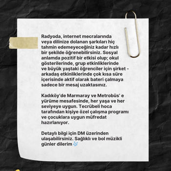 Sevdiğiniz şarkıları kısa sürede çalmayı öğrenin. 5 yılı geçen öğretim tecrübesindeki genç ve dinamik bateri öğretmeni ile kaç yaşınızda olursanız olun bateri öğrenmek artık düşündüğünüzden daha kolay ve daha hızlı. Detaylar için iletişime geçiniz. Bol müzikli günler dilerim.